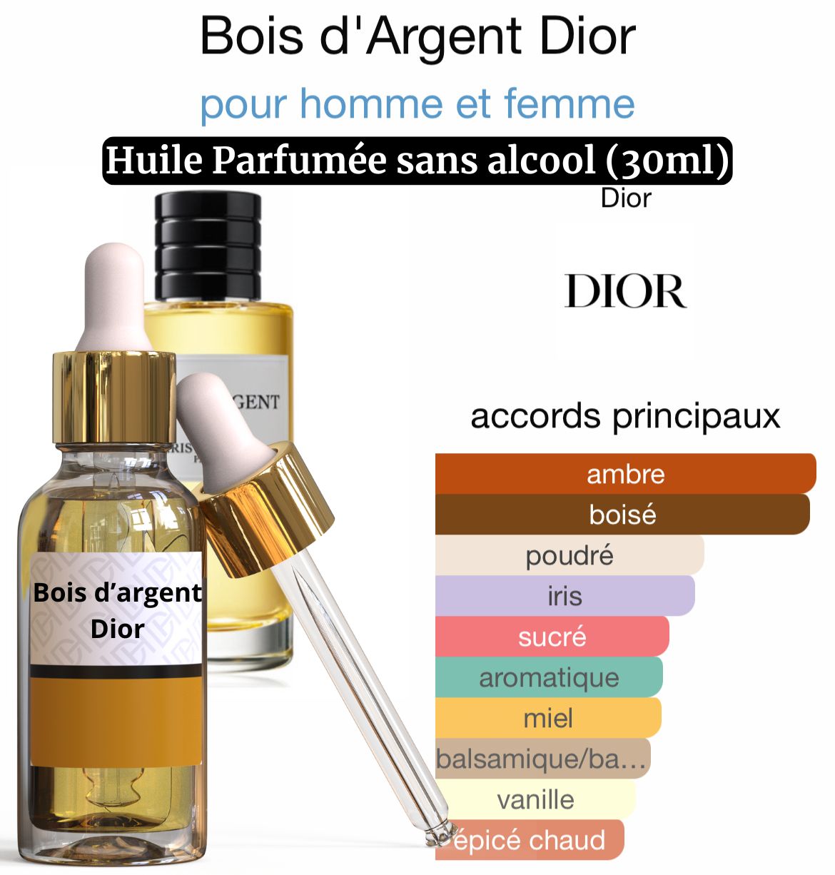 Bois d’Argent de Dior est un parfum unisexe élégant et subtile. Les notes poudrées de l’iris rencontrent la chaleur du musc blanc et les nuances boisées de l’encens, créant une composition raffinée et apaisante.