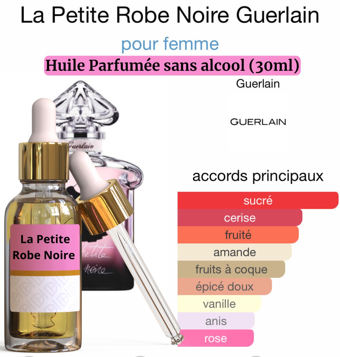 La Petite Robe Noire est une icône de féminité et d’élégance. Les notes sucrées de cerise et d’amande rencontrent la sophistication de la rose, avec un fond intense de patchouli. Idéal pour les femmes audacieuses et glamour.