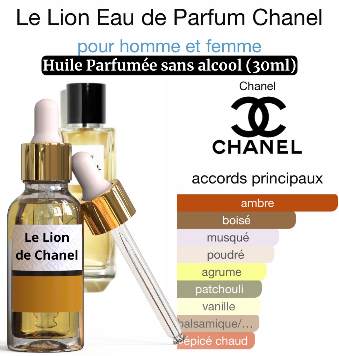 Le Lion de Chanel est une célébration de la force et de la majesté. Les accords ambrés de labdanum et de vanille se marient aux bois fumés, créant un parfum audacieux et élégant, parfait pour affirmer sa personnalité.